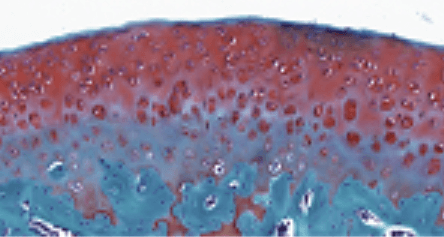 番紅-固綠染色(軟骨)在涉及關(guān)節(jié)軟骨及軟骨下骨的形態(tài)學(xué)研究中,常需聯(lián)合使用多種染料以顯示其組織學(xué)結(jié)構(gòu)。其中,起源于上世紀(jì)60年代的番紅O(safranin O)-固綠(fast green)染色因可以直觀反映關(guān)節(jié)軟骨、軟骨下骨和骨組織的結(jié)構(gòu)而備受青睞。軟骨呈紅色,成骨呈綠色。
